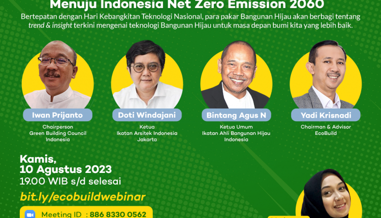 Menyikapi hal tersebut, bersamaan dengan momentum Hari Kebangkitan Teknologi Nasional pada tanggal 10 Agustus 2023, Ecobuild menyelenggarakan Talkshow dengan tema “Strategi Green Building Menuju Indonesia Net Zero Emission 2060”.