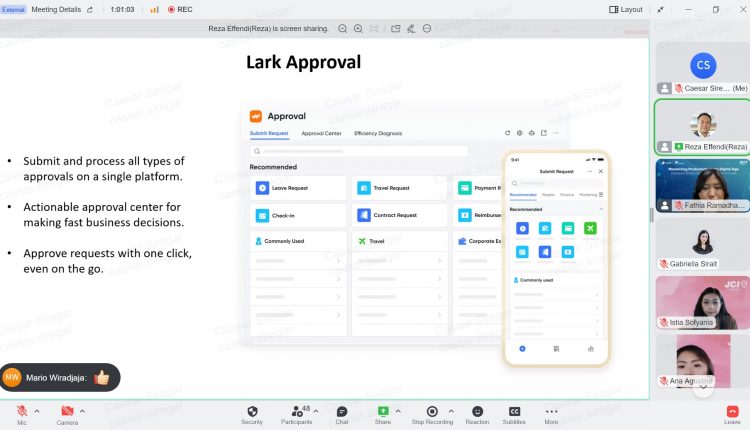 Reza menjelaskan beberapa fitur Lark yang telah membantu beberapa perusahaan dalam meningkatkan komunikasi, mengatasi tantangan operasional di masa pandemic dan juga masa pasca pandemic, memperluas operasi, dan meningkatkan efisiensi operasi dan kolaborasi.
