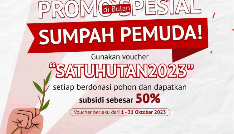 Dalam rangka peringati Hari Sumpah Pemuda tanggal 28 Oktober, LindungiHutan mengajak generasi muda untuk jaga kelestarian hutan. LindungiHutan bagikan promo penghijauan “SATUHUTAN2023” untuk setiap donasi pohon di platform LindungiHutan mulai 1-31 Oktober 2023.