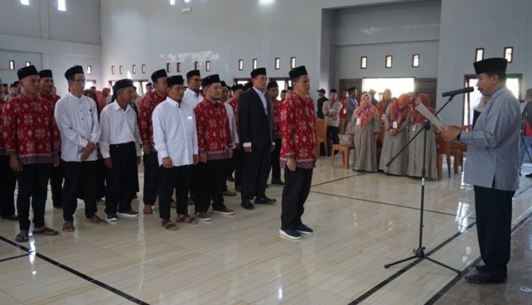 KOTA BANGUN DARAT: Sekretaris Daerah (Sekda) Kabupaten Kutai Kartanegara (Kukar) H Sunggono yang juga Ketua Lembaga Pengembangan Tilawatil Qur’an (LPTQ) Kukar, melantik Dewan juri/hakim yang akan bertugas pada pelaksanaan Musabaqoh Tilawatil Qur’an (MTQ) ke 44 Tingkat Kabupaten, di Balai Pertemuan Umum (BPU) Desa Kota Bangun III, Jumat (10/11).