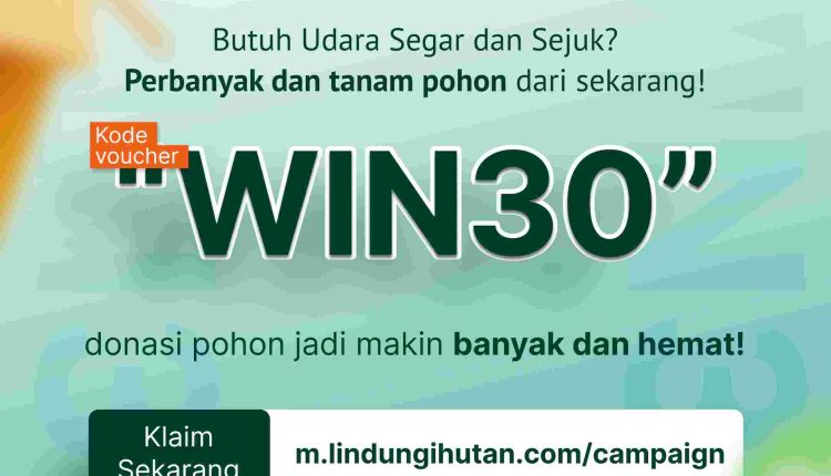 Gunakan kode voucher “WIN30” pada setiap kampanye alam yang sedang berjalan di platform LindungiHutan. Untuk informasi lebih lanjut silakan mengikuti media sosial lindungihutan.