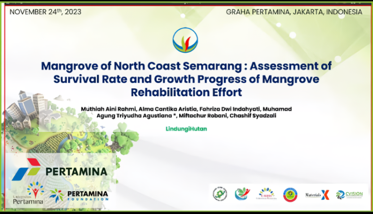 LindungiHutan memaparkan hasil penelitian tingkat survival rate dan growth rate dari penanaman mangrove terutama di wilayah pesisir utara Semarang dan sekitarnya dalam acara “2nd International Conference on Nature-Based Solution in Climate Change 2023” yang diselenggarakan oleh Pertamina pada 24 November 2023.