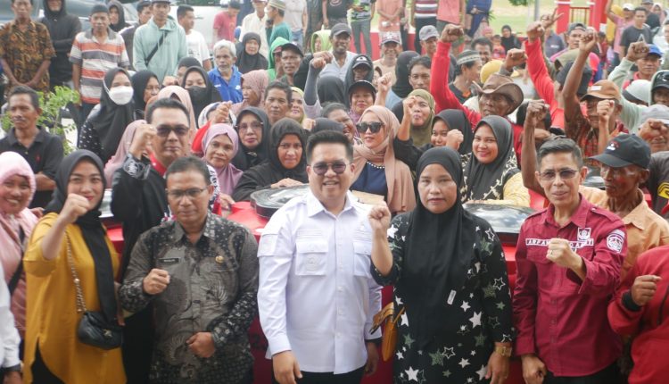 MUARA BADAK: Masyarakat di Kecamatan Muara Badak menyampaikan terima kasih atas bantuan tandon yang diserahkan Wakil Bupati Kutai Kartanegara (Kukar), Rendi Solihin, Kamis (7/12/2023).