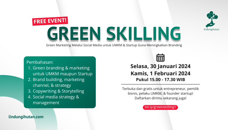 LindungiHutan mengundang pelaku UMKM, entrepreneur, maupun pelaku bisnis dalam webinar digital marketing bertajuk “Green skilling: Green Marketing via Social Media untuk UMKM dan Startup guna Meningkatkan Branding”