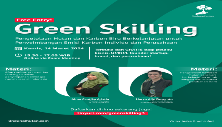 Daftarkan diri Anda dalam webinar gratis Green Skilling: Pengelolaan Hutan dan Karbon Biru Berkelanjutan untuk Penyeimbang Emisi Karbon Individu dan Perusahaan pada 14 Maret 2024 pukul 15.30-17.05 WIB.