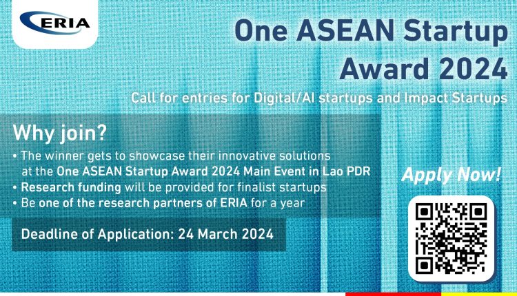 Exciting news for startups operating in ASEAN! ERIA presents the One ASEAN Startup Award, recognising innovation and impact across Southeast Asia. Are you ready to showcase your startup’s potential? Nominate now! Deadline: 24 March 2024.