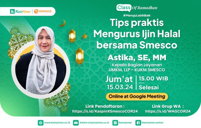 Class of Ramadhan Kasir Pintar hadir kembali di bulan Ramadhan 2024 ini dengan berbagai tema yang menarik. Diawali dengan edukasi mengenai pengurusan ijin sertifikasi Halal yang bekerja sama dengan Smesco Indonesia. Dilanjutkan dengan sharing knowledge seputar branding sebuah produk dari Soodu.id agar bisnis yang dijalankan bisa lebih dikenal oleh masyarakat luas.