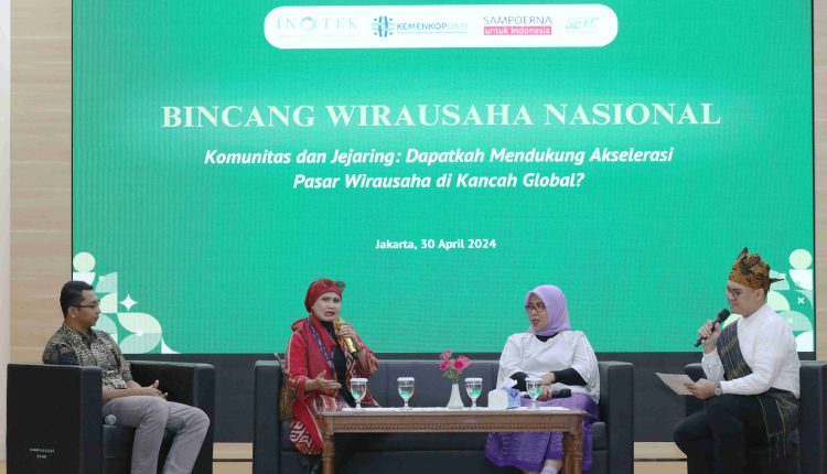 PT HM Sampoerna Tbk. (Sampoerna), melalui program pemberdayaan UMKM “Sampoerna Entrepreneurship Training Center (SETC)” di bawah payung Program Keberlanjutan “Sampoerna Untuk Indonesia”, mengadakan Bincang Wirausaha Nasional di Auditorium Kementerian Koperasi dan UKM, Jakarta, Selasa (30/4/2024). Acara yang juga disiarkan secara daring di tiga 6 provinsi lainnya, Daerah Khusus Jakarta, Banten, Jawa Tengah, Jawa Timur, Jawa Barat dan Bali ini bertujuan untuk meningkatkan pemahaman dan pengetahuan terkait komunitas dan jejaring dalam mendukung akselerasi pasar wirausaha, sekaligus menyampaikan inisiatif yang akan digelar melalui program “SMEs Market Acceleration & Global Access Tap-in (SEMANGAT).”