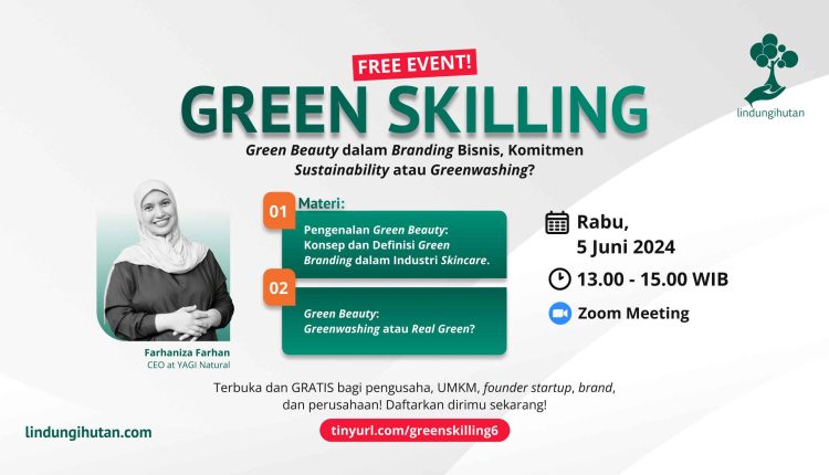 Dalam rangka memperingati Hari Lingkungan Hidup Sedunia, LindungiHutan, salah satu startup lingkungan, mengadakan webinar dengan mengangkat judul “Green Skilling: Green Beauty dalam Branding Bisnis- Komitmen Sustainability atau Greenwashing?” untuk membahas mengenai branding keberlanjutan di dalam bisnis kecantikan dan langkah mengatasi greenwashing di Indonesia.