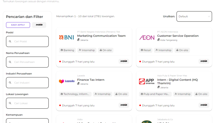 - Temukan lowongan kerja dan pilih MSIB untuk melihat berbagai perusahaan dan posisi yang tersedia.