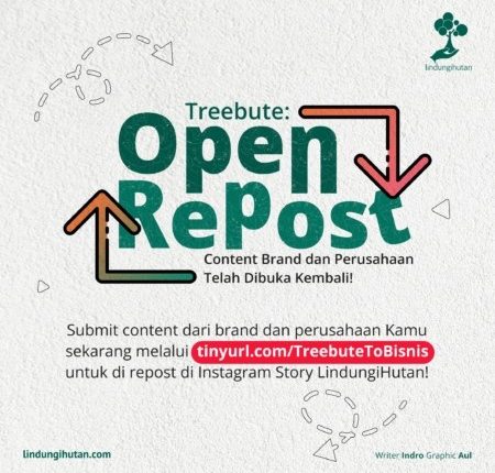 Untuk informasi lebih lanjut mengenai Treebute, silakan kunjungi akun Instagram LindungiHutan dan daftarkan bisnis Anda melalui tinyurl.com/TreebuteToBisnis.