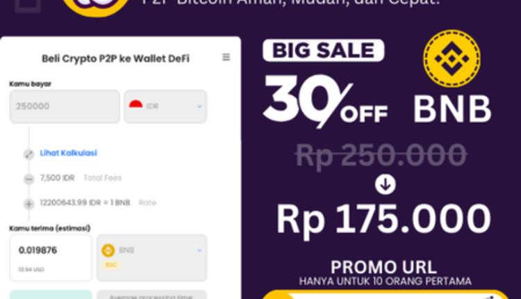 Beli Finance, dalam kolaborasi dengan CryptoWatch.ID, meluncurkan platform terbaru mereka, P2P Beli Finance. Untuk merayakan peluncuran ini, mereka menawarkan promosi eksklusif berupa diskon 30% untuk pembelian Token BNB, namun hanya untuk 100 pembeli pertama. P2P Beli Finance adalah platform keuangan terdesentralisasi yang memudahkan proses onramp dari fiat ke kripto, memungkinkan pengguna membeli mata uang kripto langsung dari pengguna lain dengan aman dan efisien. Untuk mendapatkan diskon ini, pengguna cukup mengunjungi https://bnb.beli.fi/30 dan menggunakan kode promo yang tersedia