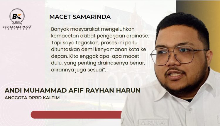 SAMARINDA – Politisi Partai Gerindra di DPRD Kaltim yang berasal dari daerah pemilihan Kota Samarinda, Andi Muhammad Afif Rayhan Harun meminta masyarakat bersabar menghadapi kemacetan yang belakangan terjadi di sekitaran Samarinda Utara. Kemacetan itu terjadi akibat adanya perbaikan drainase oleh pemerintah.