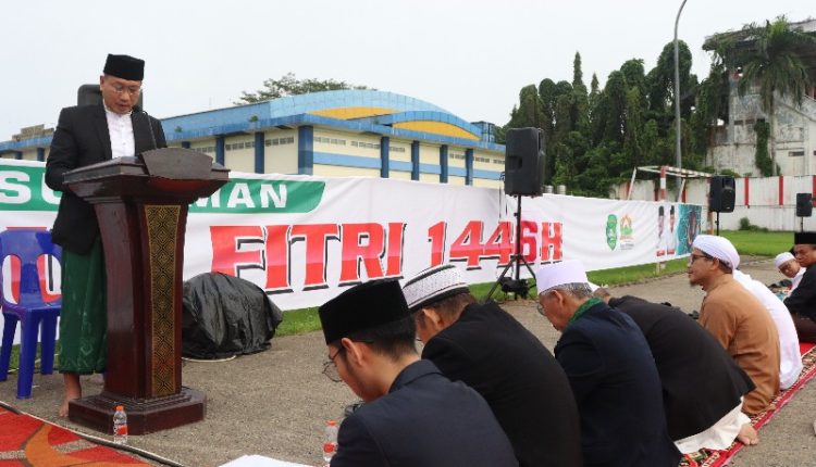 Di akhir sambutannya, Dafip Haryanto mengajak semua jamaah untuk menjaga persatuan dan kesatuan dalam membangun daerah yang lebih baik.