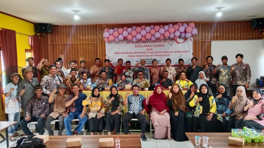 Kepala Desa Suka Rahmat, Hasnawati, menegaskan bahwa deklarasi damai ini menjadi langkah strategis dalam menjaga persatuan dan kebersamaan masyarakat selama tahapan pemilihan RT berlangsung.
