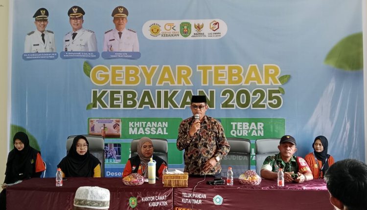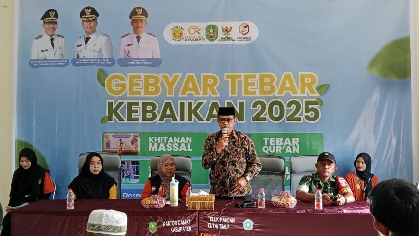 1BANGSA.ID – Camat Teluk Pandan, Anwar, S.Pd, menghadiri kegiatan bakti kesehatan berupa khitanan massal yang diselenggarakan oleh organisasi sosial Nasib Baik Sangatta dengan tema Gebyar Kebaikan Tahun 2025. Kegiatan tersebut berlangsung di Gedung TP PKK Kecamatan Teluk Pandan, Minggu (14/12/2025).